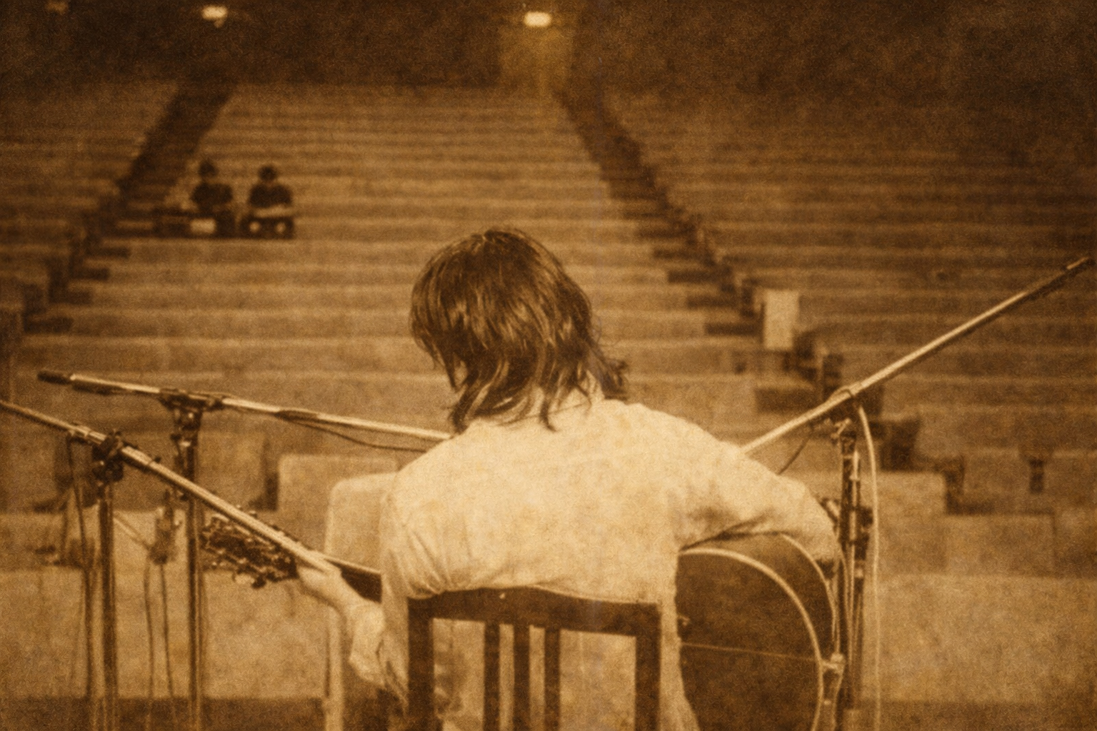 ぼくは楽屋で自分のギターの弦を張り替えていた。